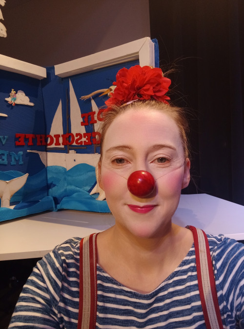 Dann halfen mir die Kinder bei der Schatzsuche und bei den Aufgaben. Als ich wieder abgeschminkt war und meine Koffer nach draußen rollte, rief ein Vater: „Schau mal, da ist die Glucks!“ Ich lächelte. Das Mädchen sagte: „Nein Papa, die Glucks hat doch eine rote Nase!“ Und da sagte der Vater: „Ach so, ja, stimmt!“ Wir zwinkerten uns zu.