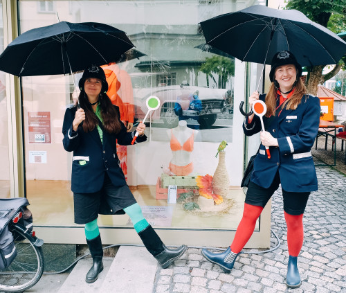 Heute waren wir als britische Bobby-Damen vor Ort. Wir erzählten den Gästen, wir seien extra aus London aus dem Hyde-Park eingeflogen, um bei der Party für Fröhlichkeit zu sorgen. Das Wetter war regnerisch, und unterm Zelt kam Campingplatz-Feeling auf. Die Band spielte, wir tanzten mit unseren Schirmen einen Regentanz, und auf wundersame Weise hörte es plötzlich auf zu regnen. Wir begrüßten jede Menge Gäste und verteilten auch die eine oder andere Universalgenehmigung, die das Publikum berechtigte, das Leben in vollen Zügen zu genießen. Wir sind ja schließlich in Deutschland – da braucht man für alles eine Genehmigung! Es war ein schönes Fest, und wir freuen uns jetzt schon aufs nächste Jahr. Wer Sonne im Herzen trägt, ist nicht vom Wetter abhängig.