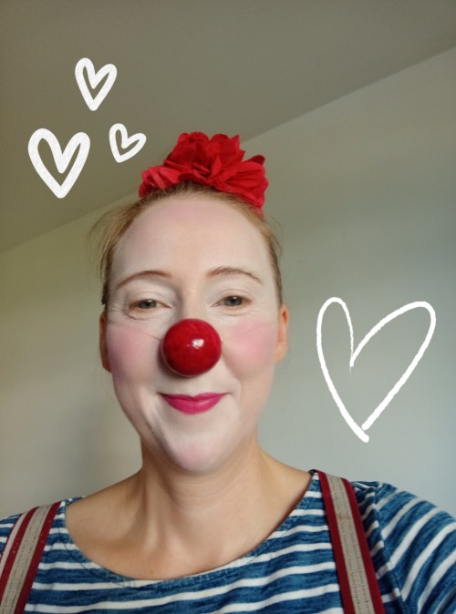 Wieder am Bahnhof angekommen treffe ich lustigerweise einen Clownskollegen, der barfuß in der Sonne sitzt und auf seine Frau wartet. Er hat wie ich einen alten Koffer vom Auftritt dabei, den er auf einem Skateboard befestigt hat und mit einem Band ziehen kann, wie er mir gleich zeigt. Wir begrüßen uns herzlich, ratschen ein Weilchen, dann muss ich zum Zug. Zum Glück haben wir unsere alten Koffer nicht verwechselt, das gäbe sonst beim nächsten Auftritt einen ziemlichen Schreck.
