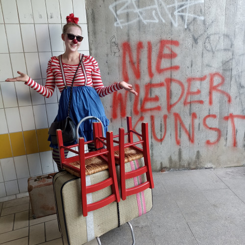 Ich hatte meine (rote) Nase voll und bewarb mich für was anderes. Und tat etwas, was mir bis dato völlig unbekannt war: Ich bewarb mich nicht per Mail für einen Auftritt, sondern für eine Ausbildung gleich mit einer ganzen Mappe. Es dauerte eine Weile, bis ich in einer Kiste mein verstaubtes Abiturzeugnis fand; ich machte ein seriöses Foto (ohne rote Nase), schrieb meinen Lebenslauf auf und bekam eine Zusage für eine berufsbegleitende Ausbildung zur Erzieherin. In meiner Vorstellung war ich durch diese Entscheidung unabhängig von der Kunstwelt und der dort herrschenden Doppelmoral geworden. Erst 2G-Schilder, dann Awareness-Teams. Werde ich in meinem Kopf nie zusammen kriegen! Sorry Leute, es war/ist vergebene Liebesmühe, mich diesbezüglich zu belehren. Ich habe auch meine Prinzipien.